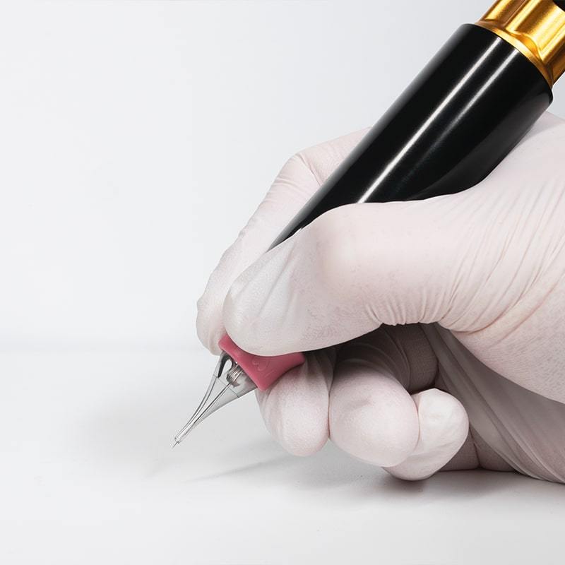 • During tattooing, clean the needle cartridge in sterile water to remove buildup and when changing colors, similar to when you are painting
